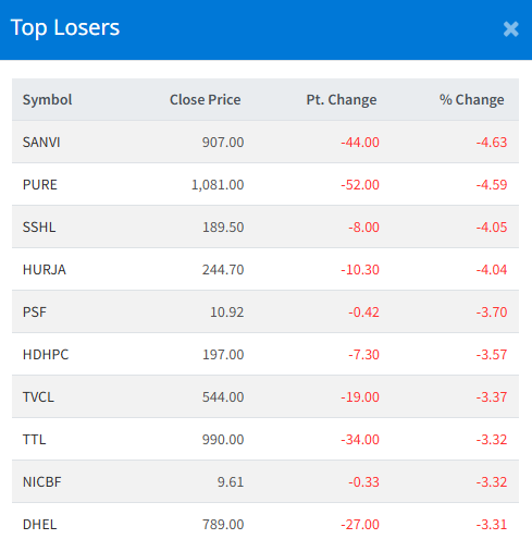 Kalinchowk Darshan Limited (KDL) led the gainer's list with 10.00% each.