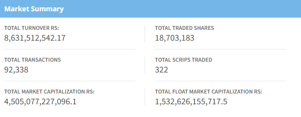 The benchmark index opened at 2695.12, touching an intraday high of 2,709.89, while the lowest point was 2,675.16. Total turnover for the day reached Rs. 8.63 Arba, with 18,703,183 shares traded across 322 companies through 92,338 transactions. Market capitalization stood at Rs. 45.05 Kharba, with a float market capitalization of Rs. 15.32 Kharba.
