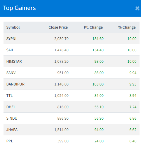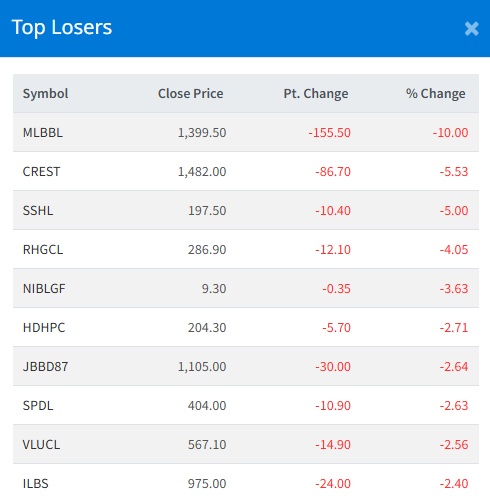 Meanwhile, Mithila LaghuBitta Bittiya Sanstha Limited (MLBBL) recorded the steepest drop, falling 10.00%.