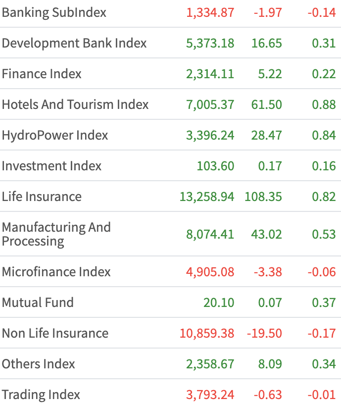 Among sectors, the Non-Life Insurance Index registered the highest loss, losing 0.17%, while the Hotel and Tourism Index saw the highest gain at 0.88%.