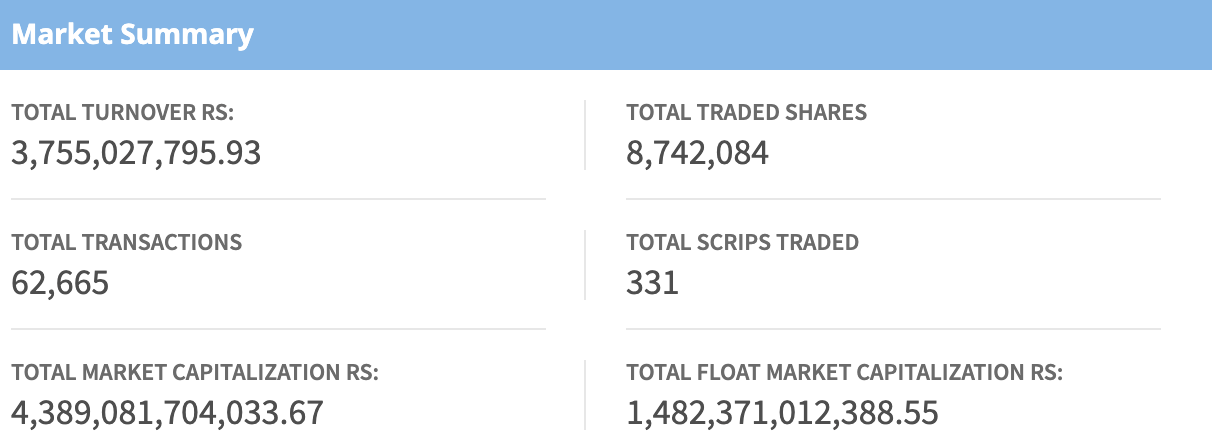 The benchmark index opened at 2,607.36, touching an intraday high of 2,618.22, while the lowest point was 2,605.60. Total turnover for the day reached Rs. 3.75 Arba, with 8,742,084 shares traded across 331 companies through 62,665 transactions. Market capitalization stood at Rs. 43.89 Kharba, with a float market capitalization of Rs. 14.82 Kharba.