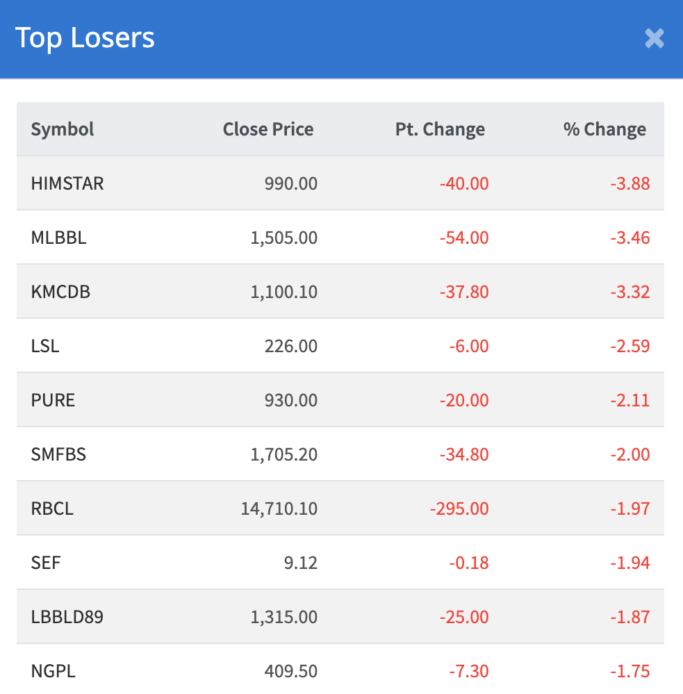 Meanwhile, Him Star Urja Company Limited (HIMSTAR) recorded the steepest drop, falling 3.88%.