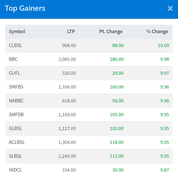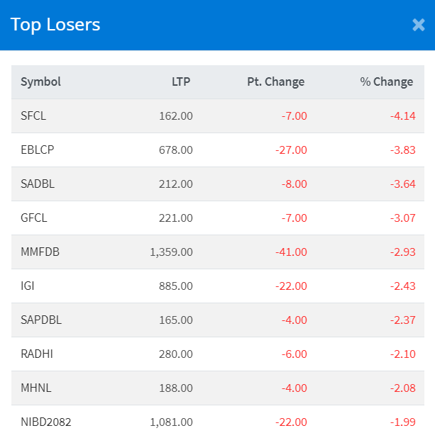 Meanwhile, Samriddhi Finance Company Limited (SFCL) lost the most 4.14%.