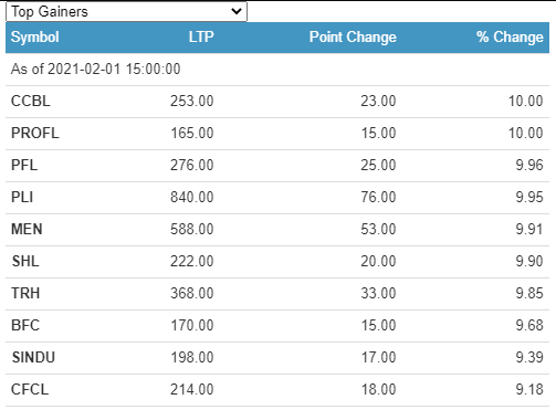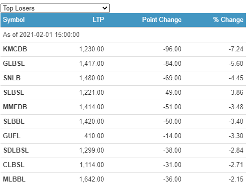 Meanwhile, Kalika Laghubitta Bittiya Sanstha Limited (KMCDB) lost the most 7.24%.