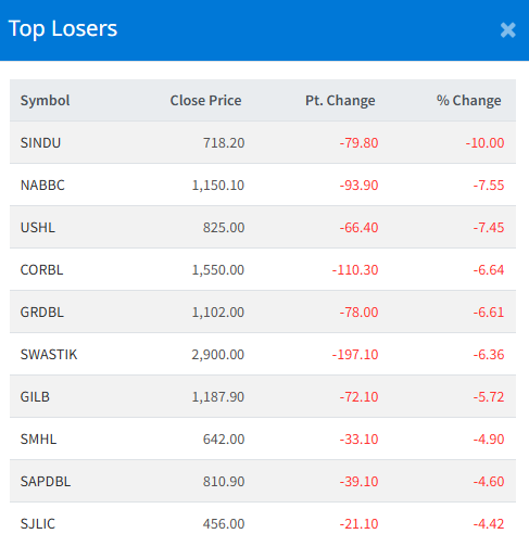 Meanwhile, Sindhu Bikash Bank Ltd (SINDU) recorded the steepest drop, falling 10.00%.