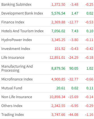 NEPSE Index Closes With a loss of 5.54 Points To Settle at 2.635 ; Only Four Indices Close At Green