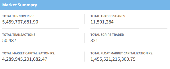 The benchmark index opened at 2570.59, touching an intraday high of 2,602.98, while the lowest point was 2,557.74. Total turnover for the day reached Rs. 5.45 Arba, with 11,501,284 shares traded across 321 companies through 50,487 transactions. Market capitalization stood at Rs. 42.89 Kharba, with a float market capitalization of Rs. 14.55 Kharba.