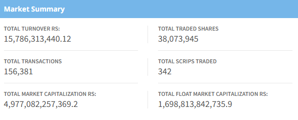 The benchmark index opened at 2939.65, touching an intraday high of 2,941.53, while the lowest point was 2,906.05. Total turnover for the day reached Rs. 15.78 Arba, with 38,073,945 shares traded across 342 companies through 156,381 transactions. Market capitalization stood at Rs. 49.77 Kharba, with a float market capitalization of Rs. 16.98 Kharba.