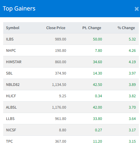 Infinity Laghubitta Bittiya Sanstha Limited (ILBS) led the gainers' list by 5.32% each.