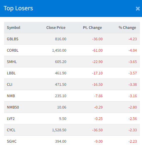 Meanwhile, Grameen Bikas Laghubitta Bittiya Sanstha Ltd. (GBLBS) recorded the steepest drop, falling 4.23%.