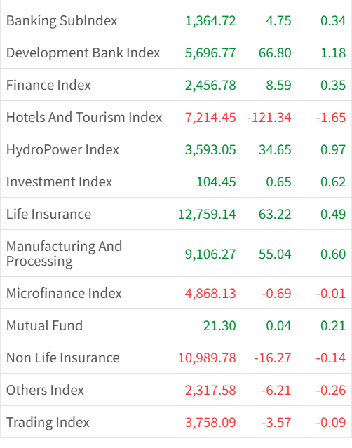 Among sectors, the Development Bank Index registered the highest gain, gaining 1.18%, while the Hotels And Tourism Index saw the highest loss at 1.65%.