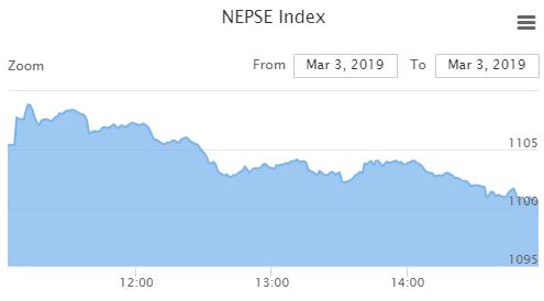 NEPSE index hits 1,100 mark with a turnover of Rs 23.5 crore; Index fell by 4.95 points