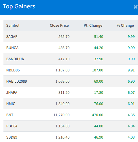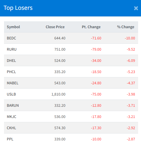 Meanwhile, Bhugol Energy Development Company Limited (BEDC) recorded the steepest drop, falling 10.00%.