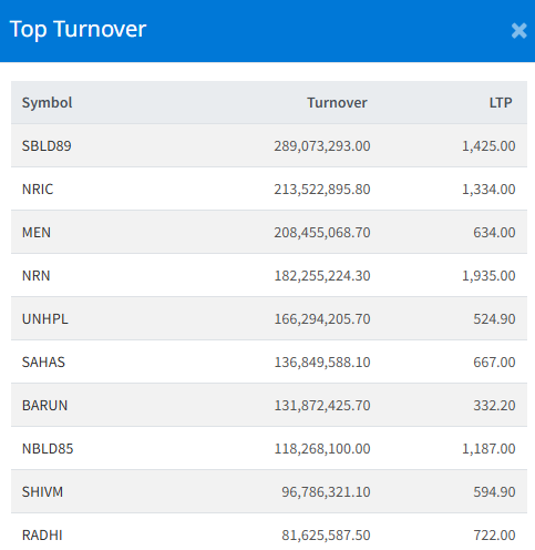 10.75% SBL Debenture 2089 (SBLD89) topped the turnover chart, amounting to Rs. 28.9 crores. The stock closed at Rs.1425.