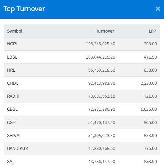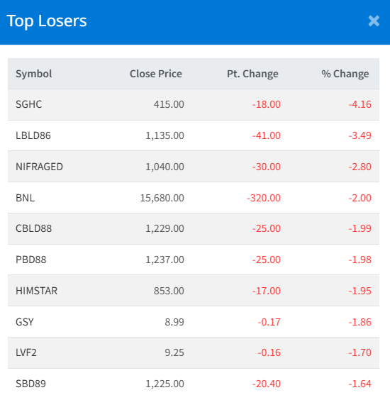 Meanwhile, Swet-Ganga Hydropower & Construction Limited (SGHC) recorded the steepest drop, falling 4.16%.