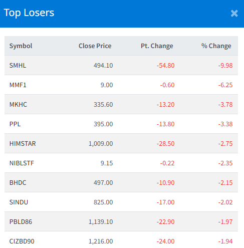 Meanwhile, Super Madi Hydropower Limited (SMHL) recorded the steepest drop, falling 9.98%.