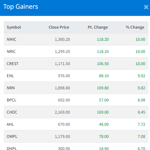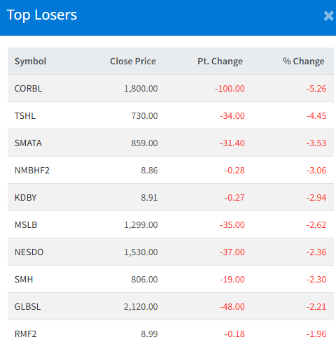 Meanwhile, Corporate Development Bank Limited (CORBL) recorded the steepest drop, falling 5.26%.
