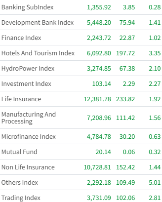 NEPSE Index Upsurges by 44.25 Points to Settle at 2,547.60 ; All Index Closes at Green