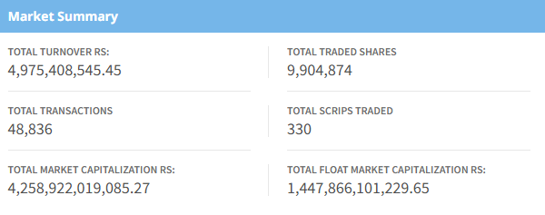 The benchmark index opened at 2521.01, touching an intraday high of 2,547.81, while the lowest point was 2,478.39. Total turnover for the day reached Rs. 4.97 Arba, with 9,904,874 shares traded across 330 companies through 48,836 transactions. Market capitalization stood at Rs. 42.58 Kharba, with a float market capitalization of Rs. 14.47 Kharba.