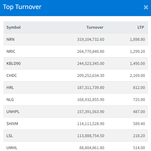 NRN Infrastructure and Development Limited (NRN) topped the turnover chart, amounting to Rs. 31.91 Crores. The stock closed at Rs. 1,898.80.