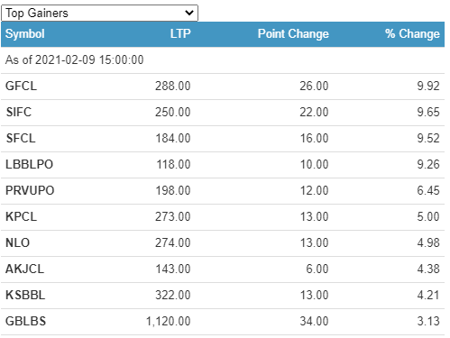 Meanwhile, Support Laghubitta Bittiya Sanstha Limited (SMB) lost the most 5.82%.