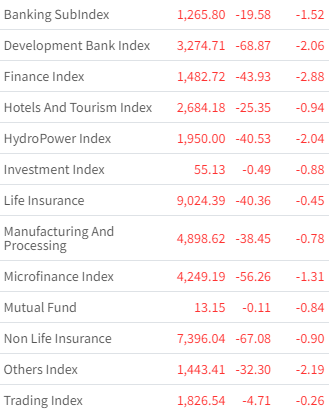 NEPSE Loses Further 27.54 Points To Close at 1,855.06; Two Scrips Lose All They Could For The Day