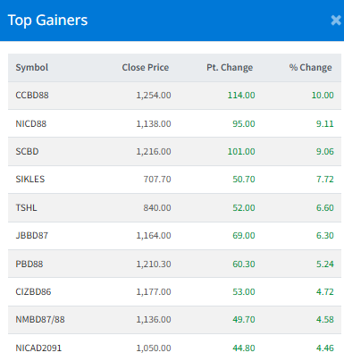 Century Debenture 2088 (CCBD88) led the gainer's list with 10.00%.