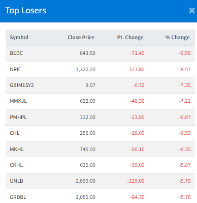 Meanwhile, Bhugol Energy Development Company Limited (BEDC) recorded the steepest drop, falling 9.99%.