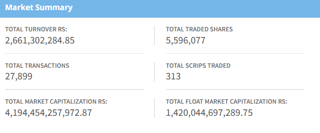 The benchmark index opened at 2,503.44, touching an intraday high of 2,509.08, while the lowest point was 2,469.37. Total turnover for the day reached Rs. 2.66 Arba, with 5,596,077 shares traded across 313 companies through 27,899 transactions. Market capitalization stood at Rs. 41.94 Kharba, with a float market capitalization of Rs. 14.20 Kharba.