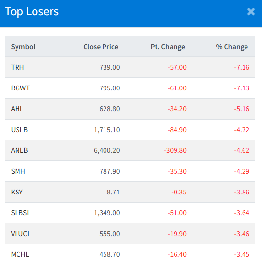 Meanwhile, Taragaon Regency Hotel Limited (TRH) recorded the steepest drop, falling 7.16%.