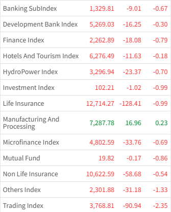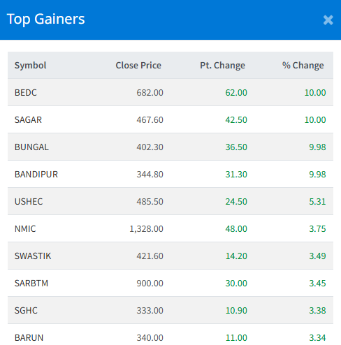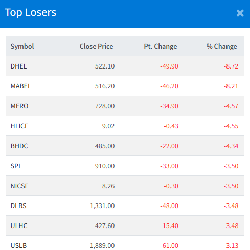 Meanwhile, Daramkhola Hydro Energy Limited (DHEL) recorded the steepest drop, falling 8.72%.