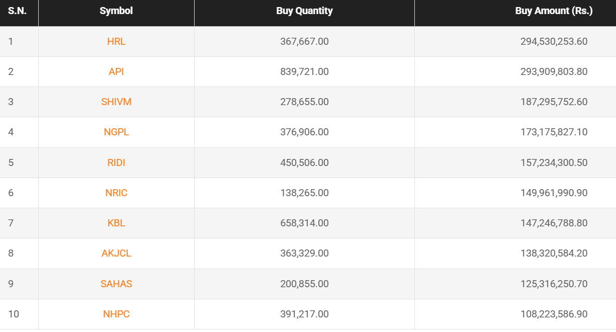 HRL is the top most bought companies by the broker with 367,667 Units of share are bought amounting Rs. 294,530,253.60.
