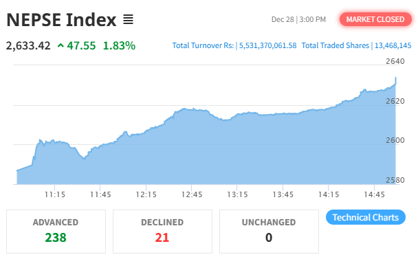 NEPSE Settles Today's Session With Significant 47.55 Points Gain; All Sector Closes at Green