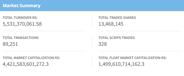 The benchmark index opened at 2586.82, touching an intraday high of 2,593.57, while the lowest point was 2,586.41. Total turnover for the day reached Rs. 5.53 Arba, with 13,468,145 shares traded across 328 companies through 89,251 transactions. Market capitalization stood at Rs. 44.21 Kharba, with a float market capitalization of Rs. 14.99 Kharba.