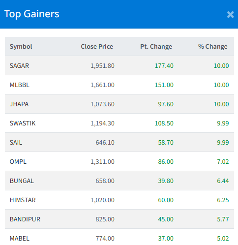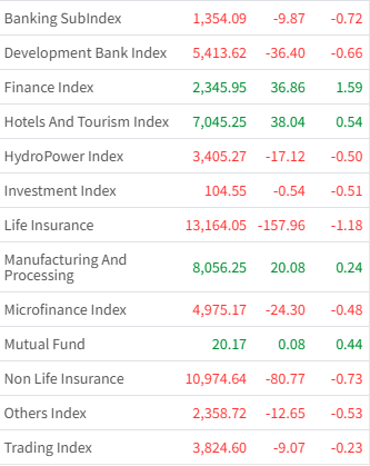 Among sectors, Finance Index registered the highest gain, gaining 1.59%, while the Life Insurance saw the highest loss at 1.18%.