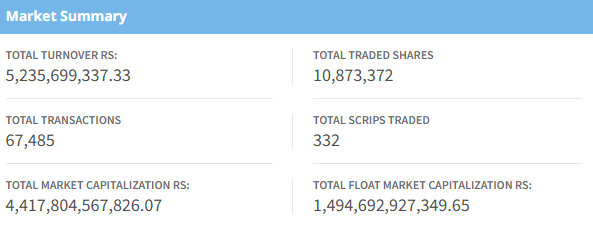 The benchmark index opened at 2647.41, touching an intraday high of 2,658.97, while the lowest point was 2,622.88. Total turnover for the day reached Rs. 5.23 Arba, with 10,873,372 shares traded across 332 companies through 67,485 transactions. Market capitalization stood at Rs. 44.17 Kharba, with a float market capitalization of Rs. 14.94 Kharba.
