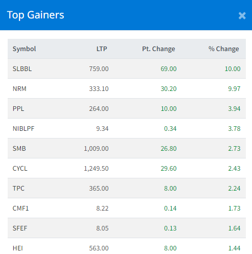 Swarojgar Laghu Bitta Bikas Bank Ltd. (SLBBL) gained the highest as it hit the positive circuit for the day to close at Rs. 759.