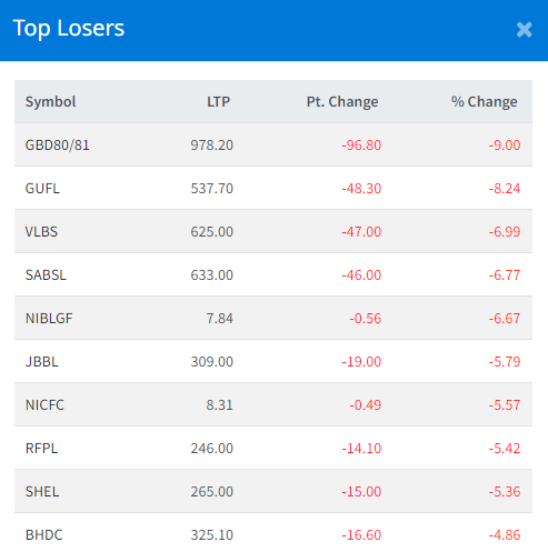 Meanwhile, 10.25% GLOBAL IME BANK LTD. DEBENTURE 2080/81 (GBD80/81) experienced the highest decline of 9%.