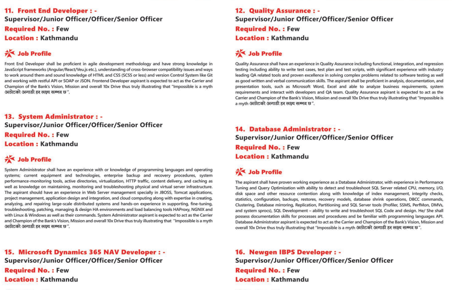 Job openings in a variety of sectors have been posted by NIC ASIA Bank Limited in Nepal. The major reasons why NIC Asia is well-known is because of its exceptional growth in the last five years in terms of profitability and marketability. For those looking for both a career boost and a competitive compensation package, this may be a fantastic option.
