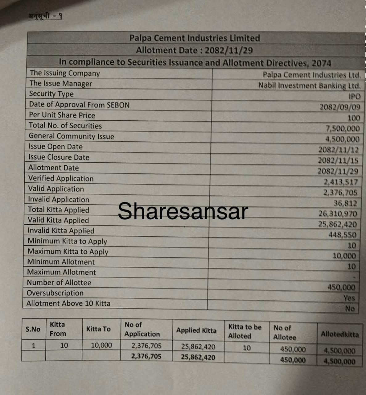 Palpa Cements Industries Limited IPO Allotment Concludes: Lucky 4,50,000 Applicants Allotted 10 Units Each via Lottery System