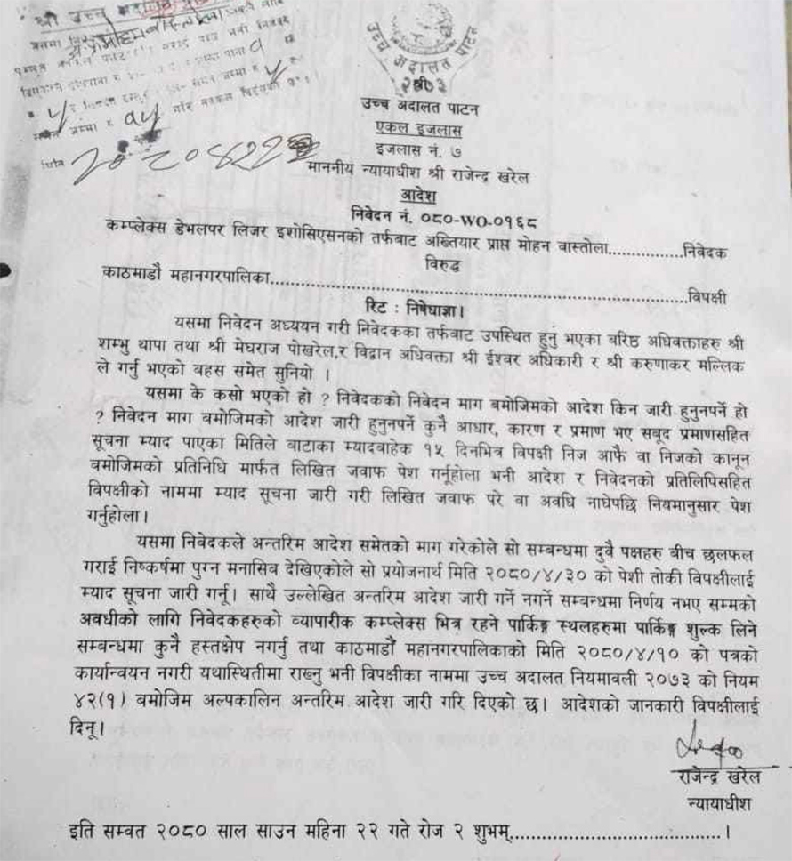 However, a significant turn of events occurred when a petition was lodged by business proprietors challenging this decision. In response, Judge Rajendra Kharel of the single bench, overseeing the case, solicited a written response from the Kathmandu Metropolitan City during the court session held on Monday.