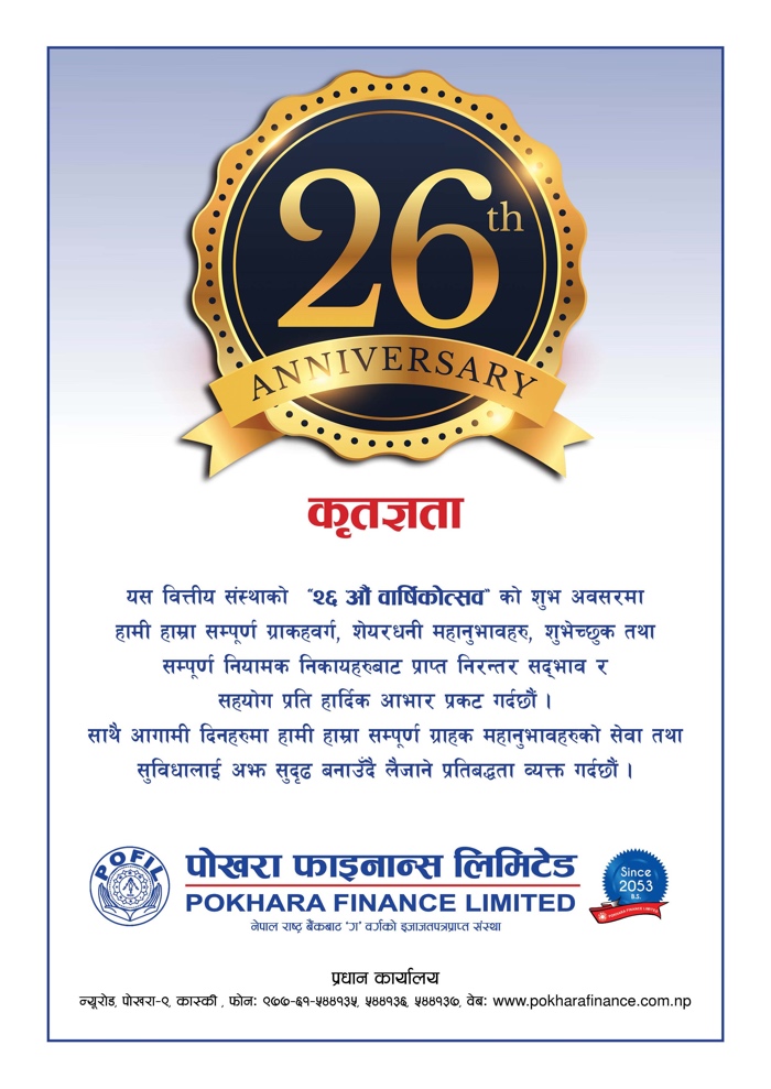 Pokhara Finance has observed its 26th anniversary on Chaitra 3, 2079 by organizing a blood donation event.