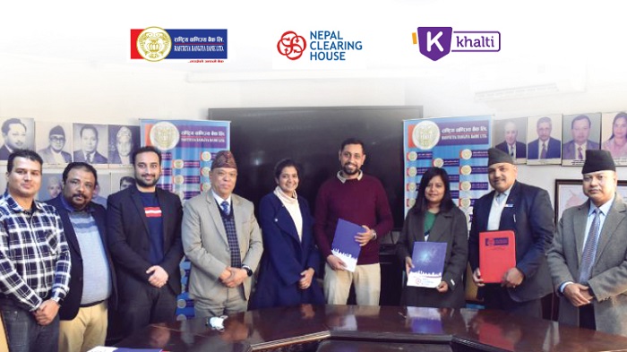 The agreement was signed in the presence of Rastriya Banijya Bank Chief Executive Officer Kiran Kumar Shrestha, Deputy Executive Officer Devesh Prasad Lohani, and Amit Agrawal, Director of Khalti.