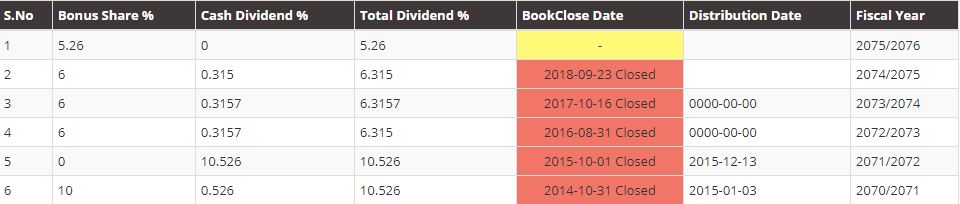 The Board Meeting held on Kartik 22, 2076 has decided to propose 5.26% bonus shares including tax amount.