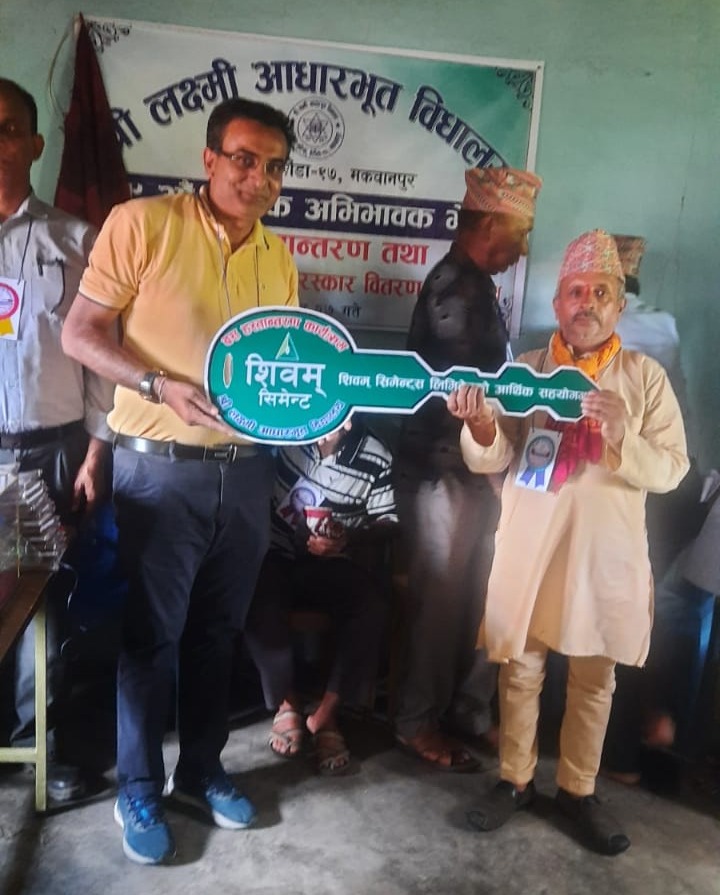 The cement company has also provided school bags to students of Biswoprakash Ma.Vi. located in Bharatpur-15 Mangalpur of Chitwan