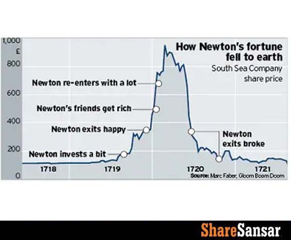 Isaac Newton bought early and made a staggering 100% return on his investment, earning about £7000 (about 2 million USD or 25 crore NRs today).