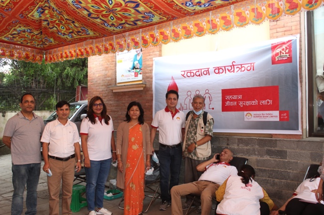 Sunrise Bank, under its 14th-anniversary celebration, has organized a series of blood donation events at different places of the nation on Aswin 17, 2078.