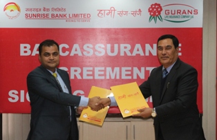 Sunrise Bank and Gurans Life Insurance have signed an agreement of bancassurance under which the bank will facilitate in sales of life insurance policies and services of the insurance company through its branches.