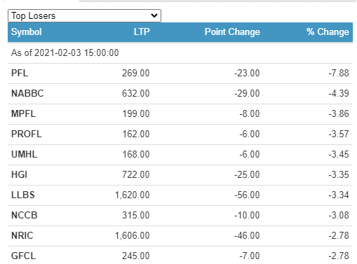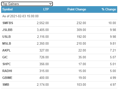 The top four highest gainers have technically hit the 10% positive circuit today. Meanwhile, Pokhara Finance Limited (PFL) lost the most 7.88%.