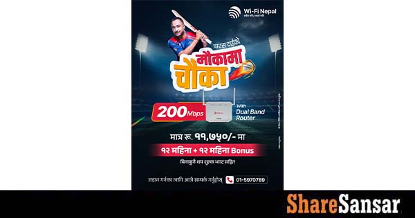 Wi-Fi Nepal has launched the “Paras Daiko Maukama Chauka” offer on the occasion of the Nepal Premier League (NPL) 2025. Under this scheme, customers who purchase a 200 Mbps annual internet package will receive an additional 12 months of internet for free, getting 24 months of service at the price of one year.